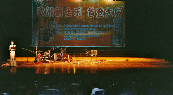 Heute sind Temperaturen bis 38 Grad angesagt. Trotzdem erscheint Jürg stärker erkältet denn je zum Frühstück. Er wird sogleich zum Arzt gebracht; wir machen die Hauptprobe zum heutigen Gig im Trio. Am späteren Nachmittag kommt Jürg - nach einer zweistündigen Infusion ziemlich benommen - ins Hotel zurück und braucht Bettruhe. Die drei Gesunden bringen Instrumente und Verstärker zum Konzertsaal, der eine Kapazität von 1000 Plätzen hat. Wir füllen ihn gut zur Hälfte und spielen - erstmals nicht open-air - ein sehr ansprechendes Konzert, werden anschliessend mit Blumen beschenkt und erhalten sehr positive Feedbacks von KonzertbesucherInnen. Besonders beeindruckt hat Dave mit einer Gesangsnummer. Erneut wird der Abend abgerundet mit einem schmackhaften Essen zusammen mit unseren schon zahlreichen Freunden in Daqing. Offenbar haben in diesen Tagen etliche Daqinger zum ersten Mal live gespielten, modernen Jazz gehört - durch uns, das will doch etwas heissen.