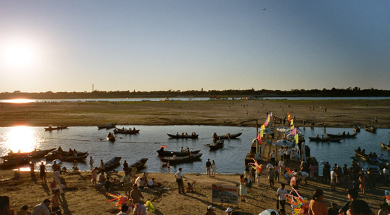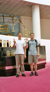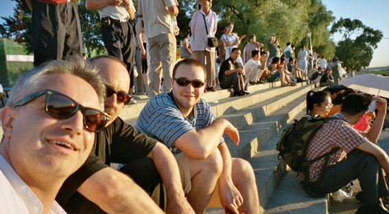 Wir fahren für einen Tag nach Harbin, einer lebendigen Stadt mit russischem (Kirchen mit Zwiebeltürmen) und westlichem (Flaniermeile) Touch, um Abschiedsgeschenke für unsere Gastgeber in Daqing zu kaufen: Schweizer Qualität. Wir möchten auch das jeweils im Juli stattfindende Musikfestival, an dem wir gerne aufgetreten wären, besuchen. Wir erleben einen vielseitigen Tag mit herrlichem Sonnenuntergang am belebten Flussufer. Vom Festival allerdings ist wenig zu sehen, niemand scheint davon zu wissen. Kurz vor der Rückfahrt finden wir eine Open-Air-Bühne in der Altstadt, wo, nebst Saxofonwohlklang zu Playback, viel russische Folklore geboten wird. Ganz nett, aber nicht wirklich was wir suchten.